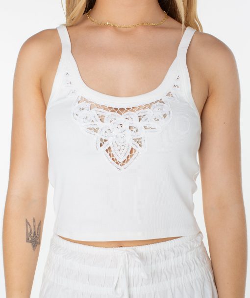 Elevate a summer basic with the Wanderlust tank top. Featuring a stretch cotton rib, a cropped fit and a lace trim neckline, this top is a flirty pick for warm weather.